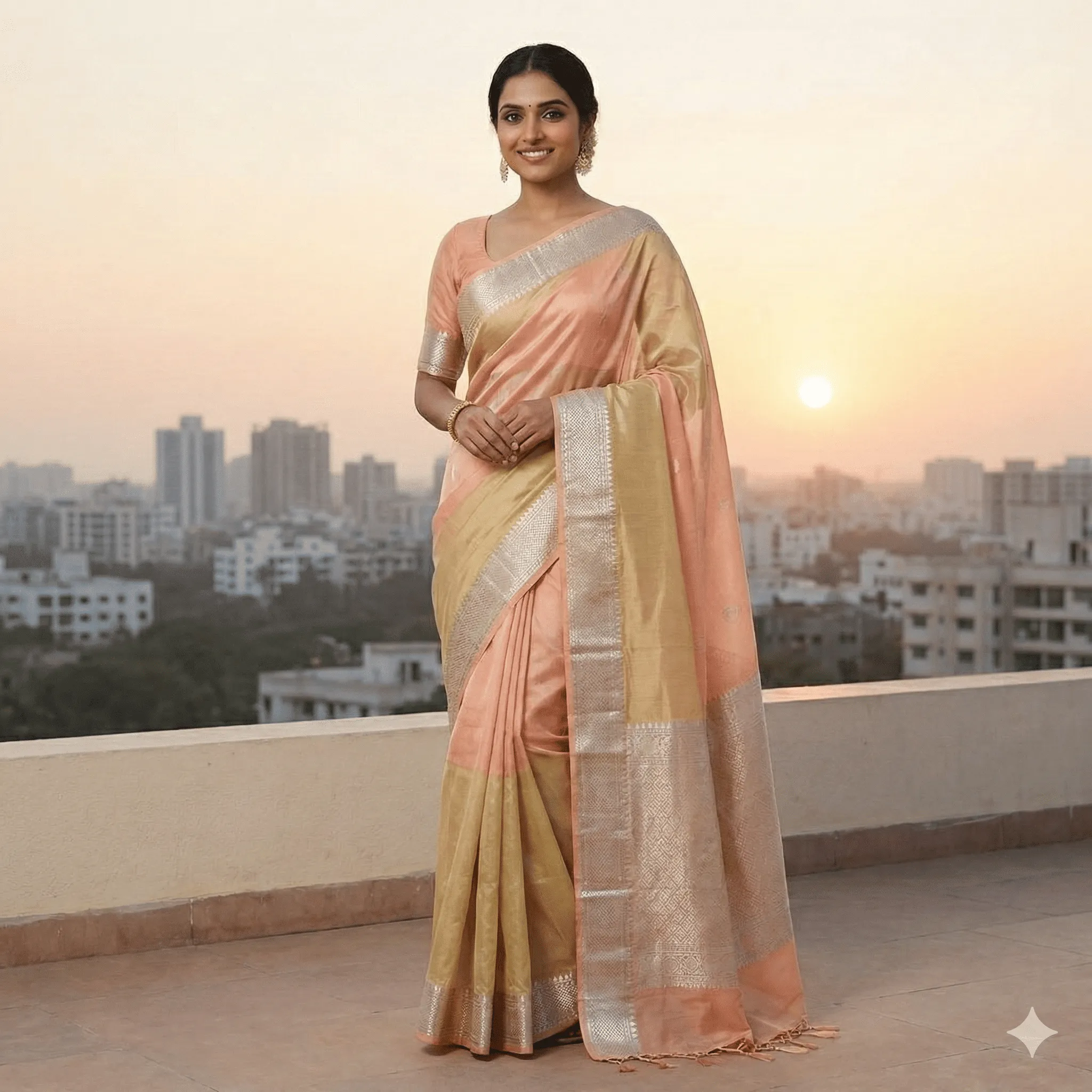The Dual-Tone Chanderi Saree is perfect for those who value sophistication and versatility. Pair it with minimal jewelry for a chic, understated look or enhance it with traditional accessories for grand occasions. Make a statement effortlessly, every time you wear it.